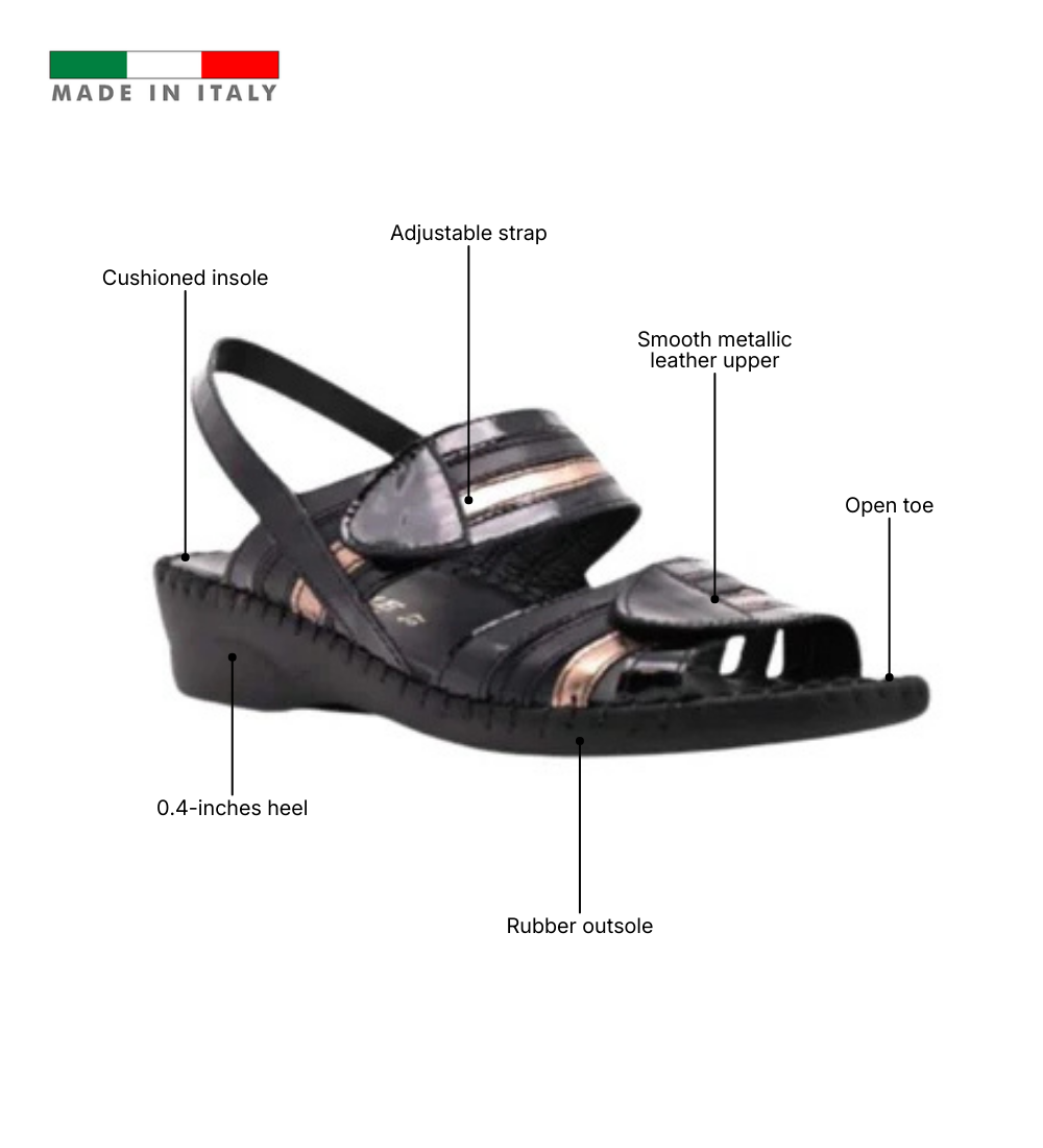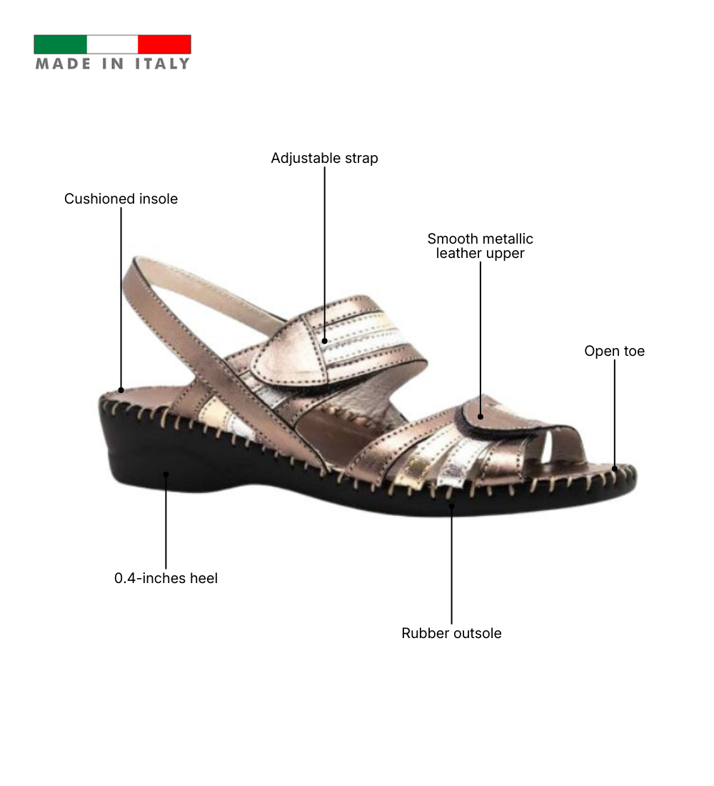The Anya flat blends timeless sophistication with modern comfort. Crafted in smooth leather or metallic specchio leather, this pointed-toe silhouette features a refined Mary Jane strap and elastic inset slingback for a secure yet flexible fit. Designed with 3D Lux Comfort cushioning and built-in arch support, it delivers lightweight wear with polished elegance—often compared to the iconic “Holly Golightly” aesthetic for its chic, classic appeal.