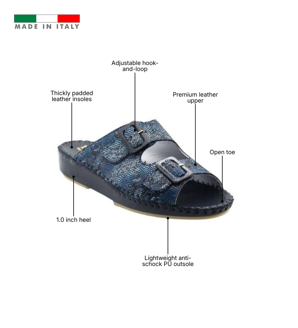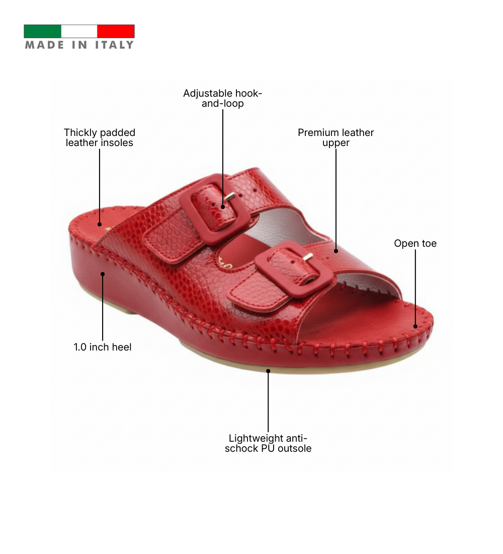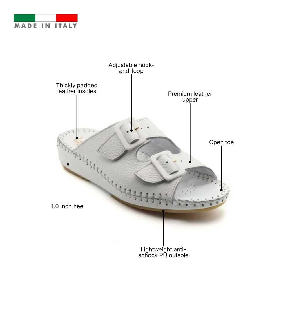 The Jen Classic is the foundation of Italian comfort, designed for those who value timeless versatility and a supportive step. Handcrafted in Italy from premium smooth leather or nubuck, this slide focuses on a clean, minimalist aesthetic in solid, go-anywhere colors. It features a signature padded footbed that cradles the foot and a lightweight anti-shock PU outsole that absorbs impact with every stride. With its adjustable buckle strap and flexible construction, the Jen Classic provides a reliable, sophisticated fit that transitions effortlessly from home to high street.