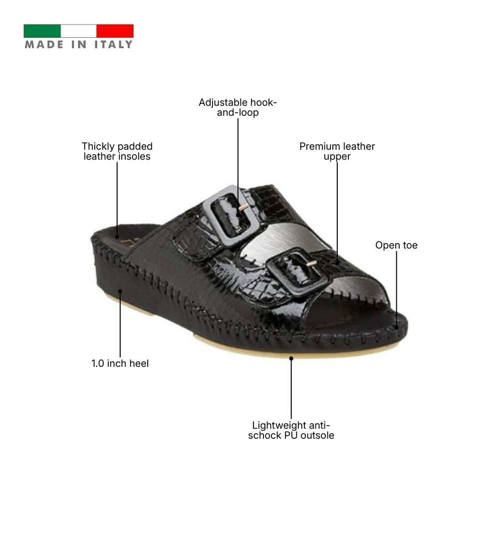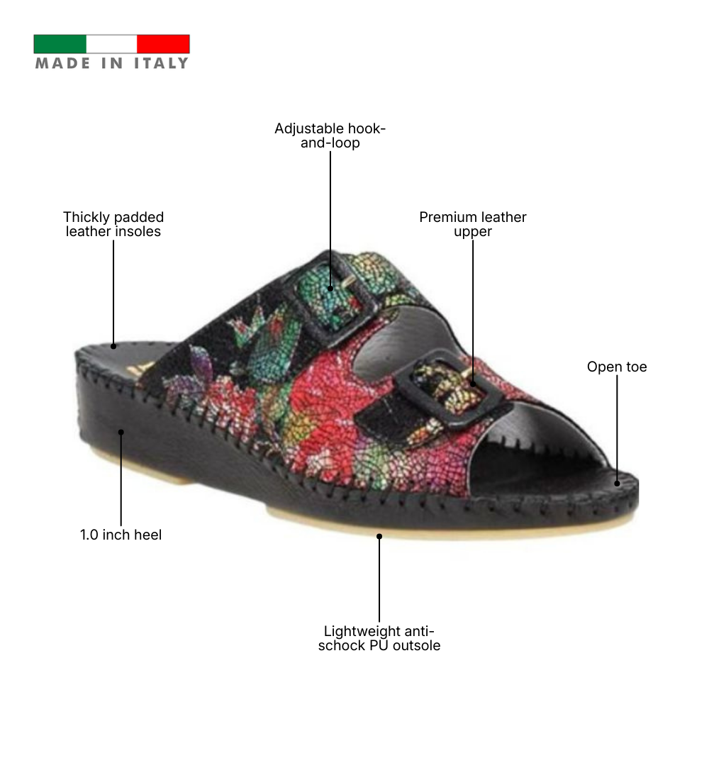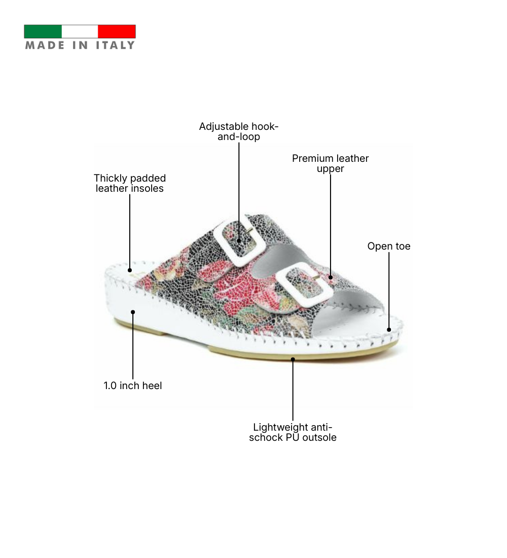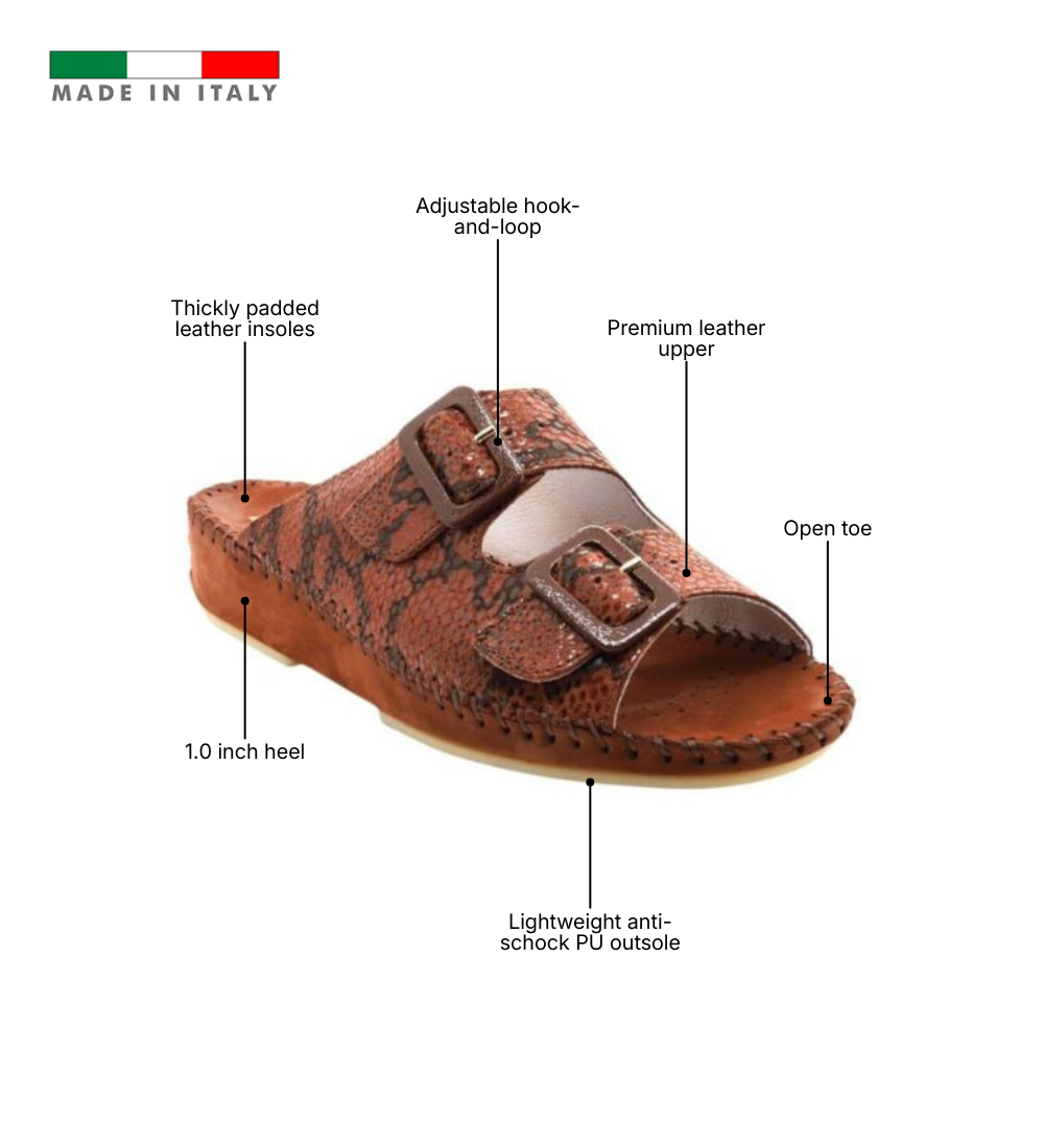 The Jen Classic is the foundation of Italian comfort, designed for those who value timeless versatility and a supportive step. Handcrafted in Italy from premium smooth leather or nubuck, this slide focuses on a clean, minimalist aesthetic in solid, go-anywhere colors. It features a signature padded footbed that cradles the foot and a lightweight anti-shock PU outsole that absorbs impact with every stride. With its adjustable buckle strap and flexible construction, the Jen Classic provides a reliable, sophisticated fit that transitions effortlessly from home to high street.