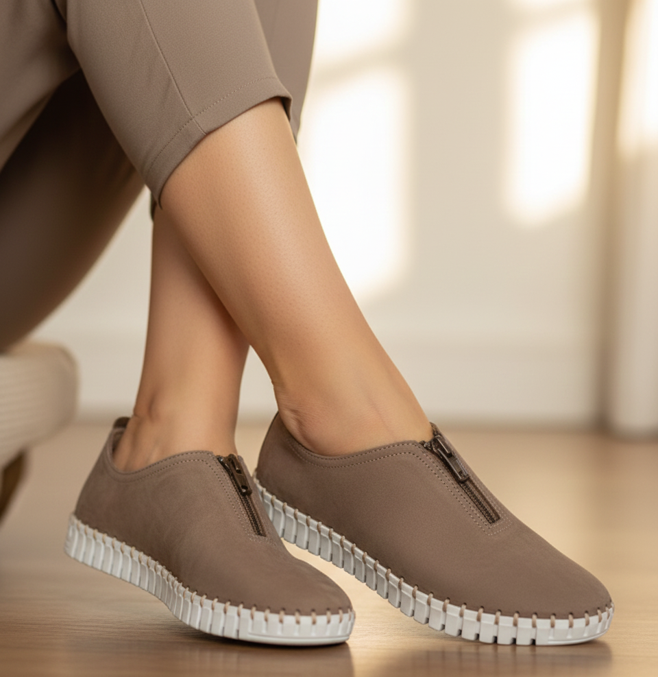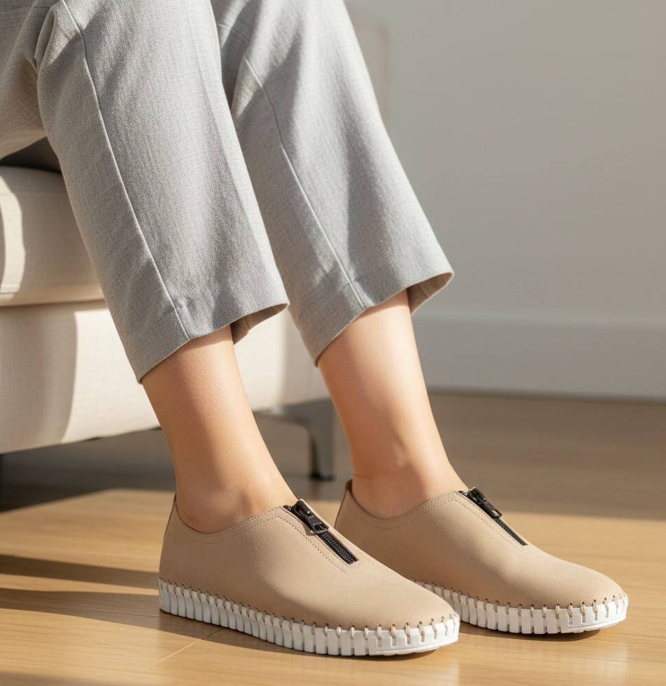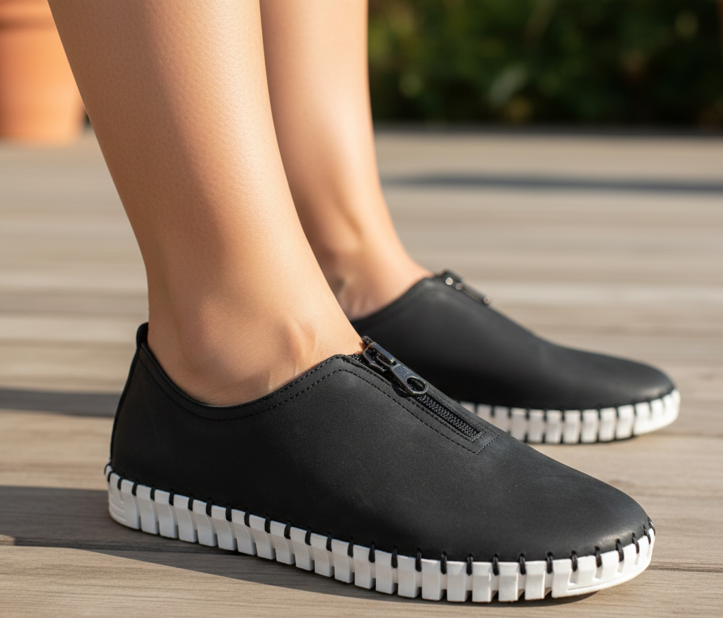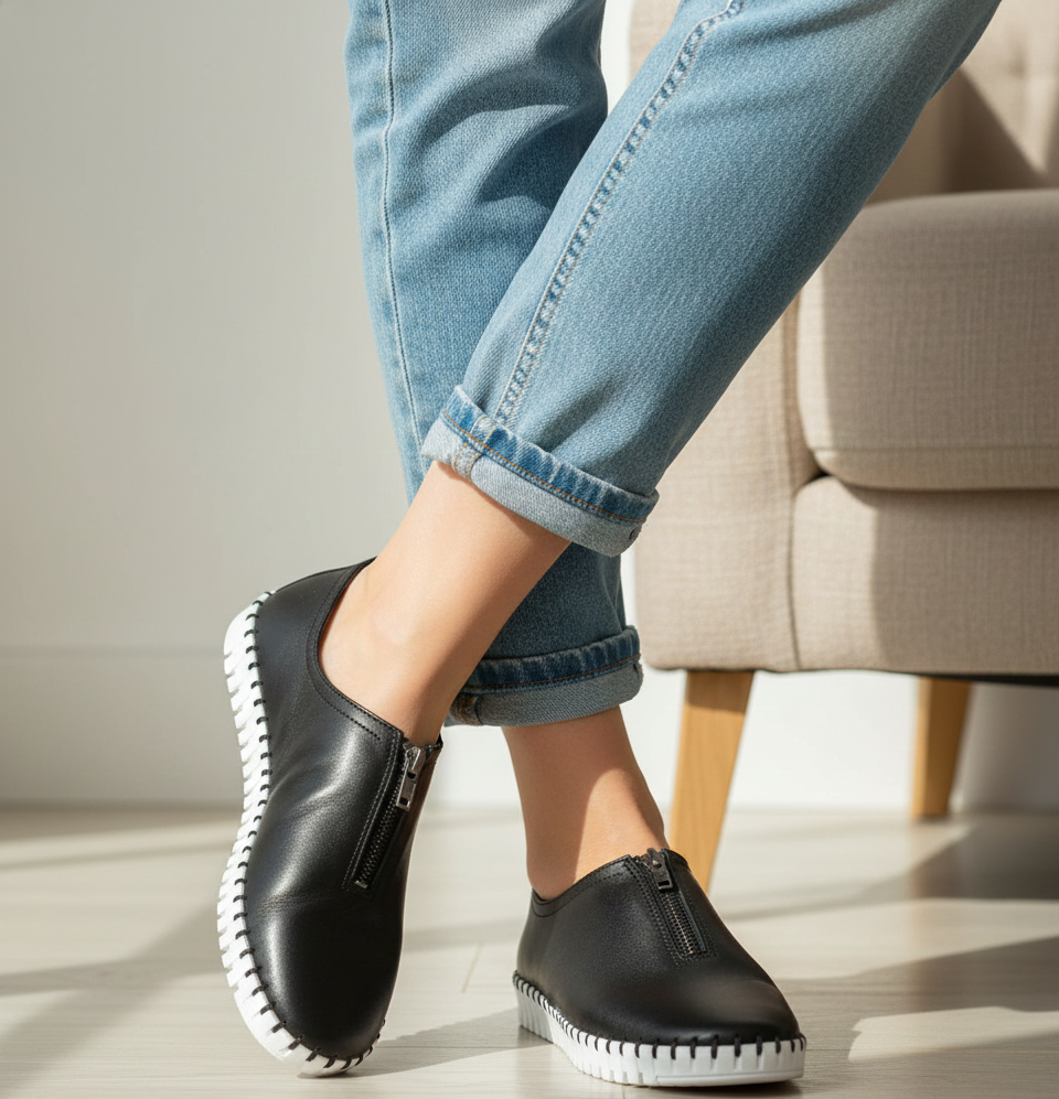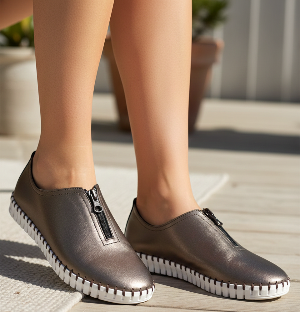 The Eric Michael Marlo is a refined slip-on sneaker that perfectly balances Italian sophistication with everyday functionality. Expertly handcrafted in Italy from premium leather, this shoe features an easy zipper closure and a shock-absorbing rubber sole, making it an ideal choice for the modern woman who values both effortless style and all-day comfort.