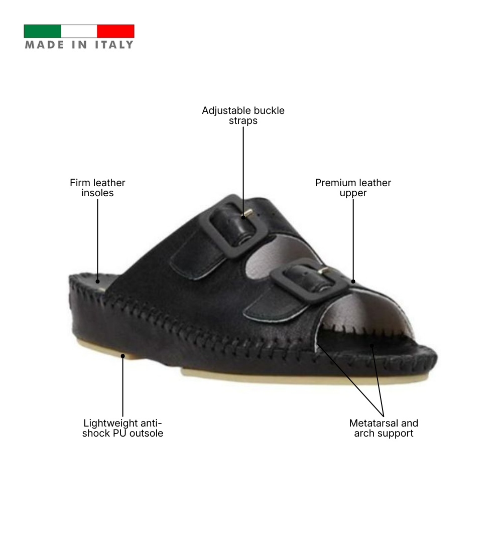 This Open Box pair comes from returns or display samples, so the slides themselves are in new, unworn condition. The box may show a little wear and tear, but the slides still deliver the full Jen experience: premium classic leather, a convenient slip-on design, and the signature cushioned support perfect for a timeless look and reliable comfort.
