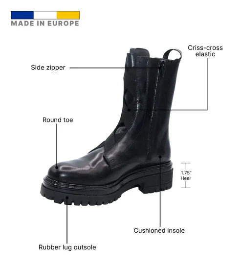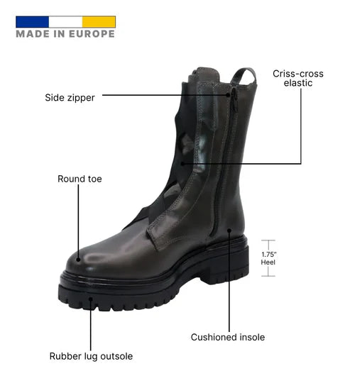 The Eric Michael Quest boot combines everyday comfort with a modern lug-sole edge. Crafted in smooth leather with a softly cushioned interior, this European-made ankle boot delivers reliable traction and versatile styling for daily wear.